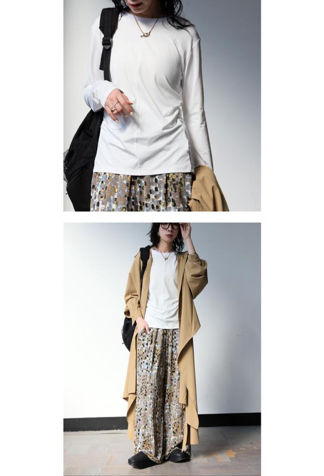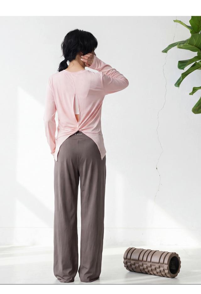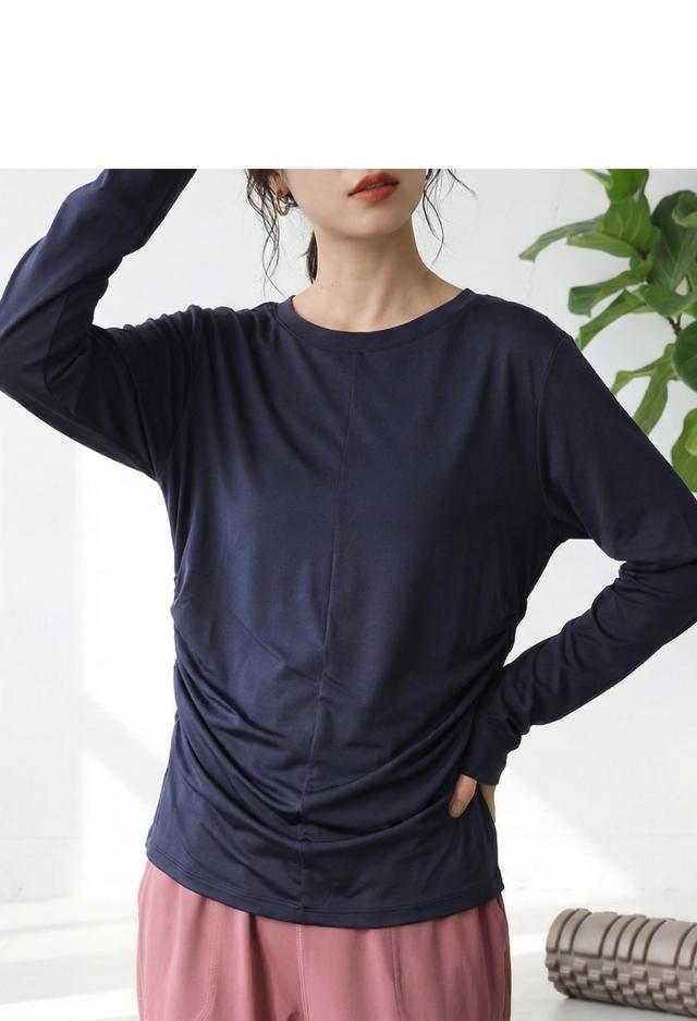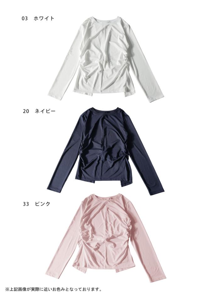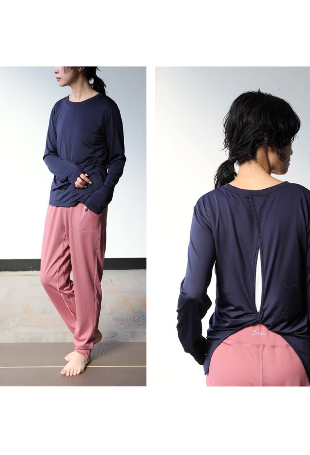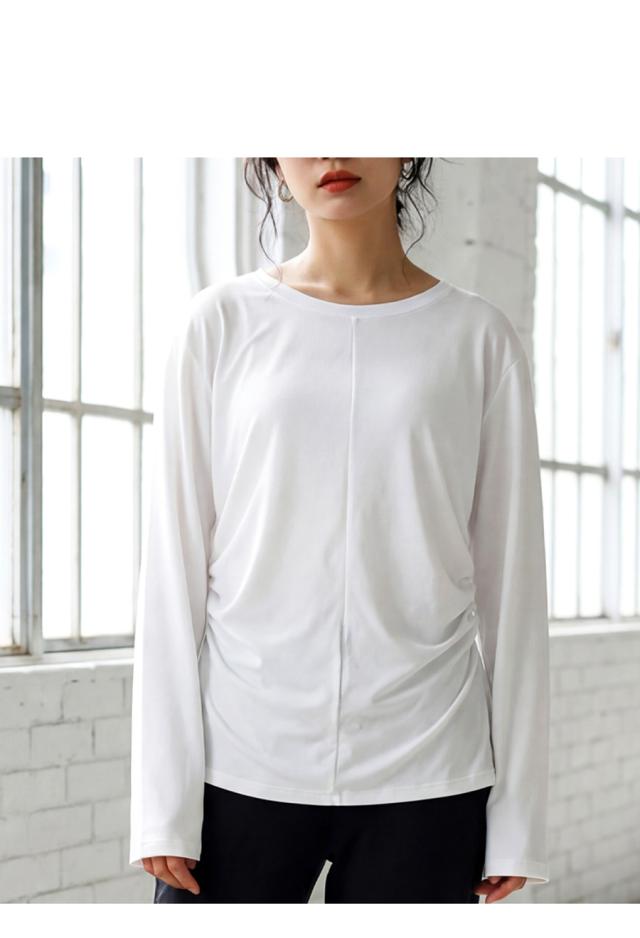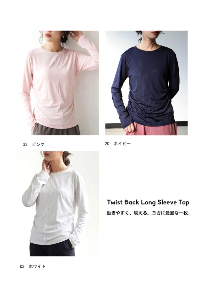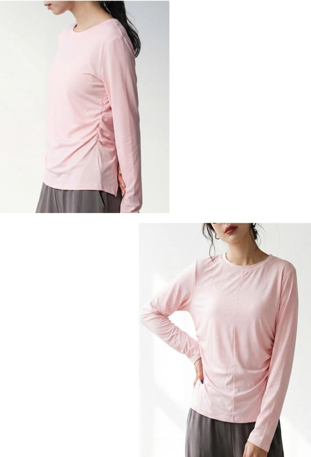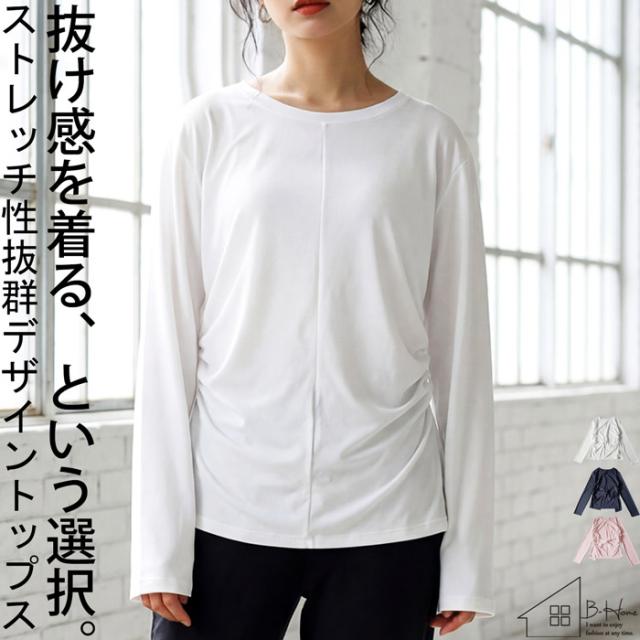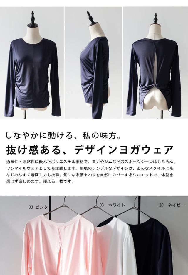 hke-2033 カットソー ロンT プルオーバー ギャザー 長袖 バックツイスト ねじれ 体型カバー 伸縮 ヨガウェア ヨガ デイリーウェア レイヤード シンプル 大人 カジュアル 無地 丸首