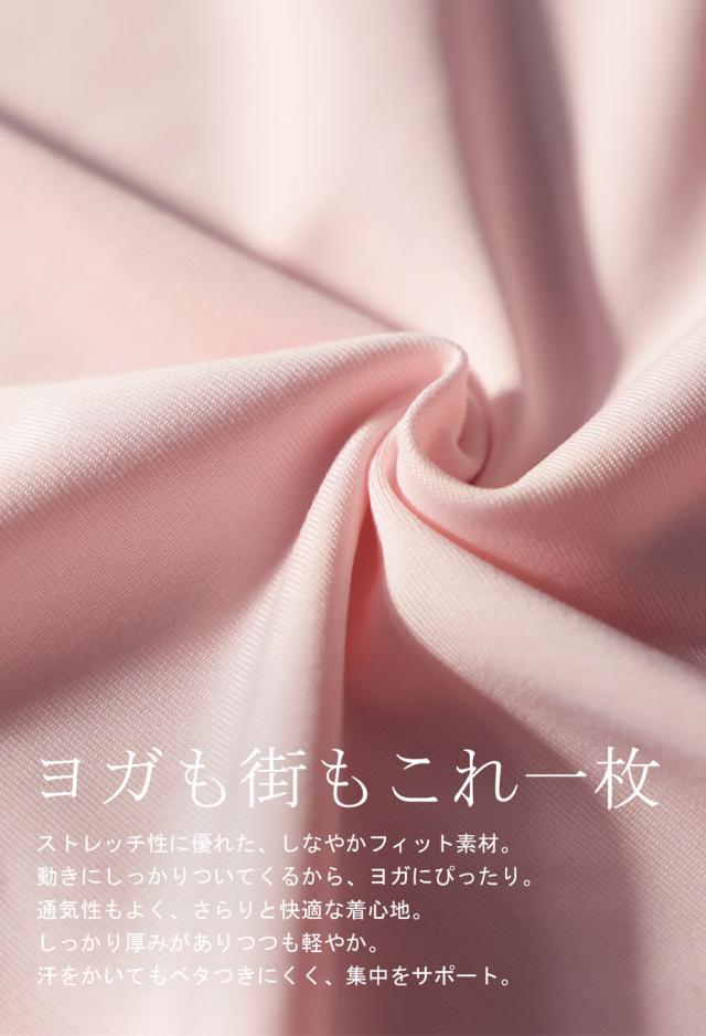 柔らかく伸縮性のある素材感で、ヨガやストレッチなどの軽い運動にも対応します。