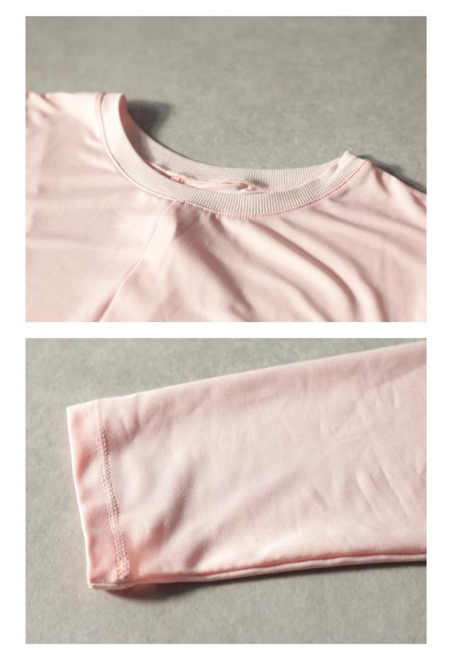 形状は身体に程よく沿うラインで、動きやすさと女性らしさを両立。