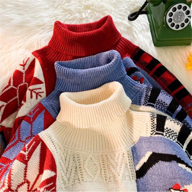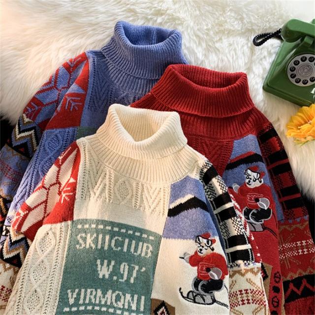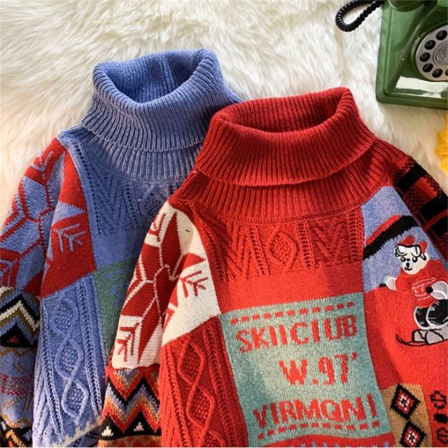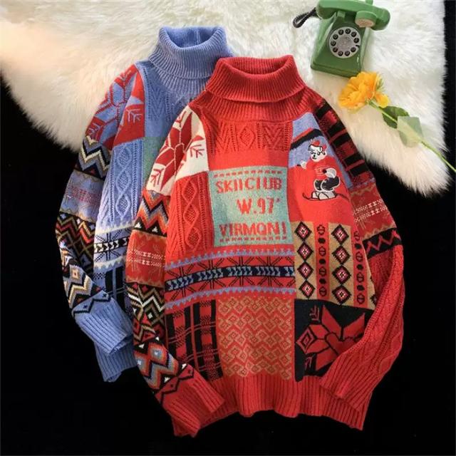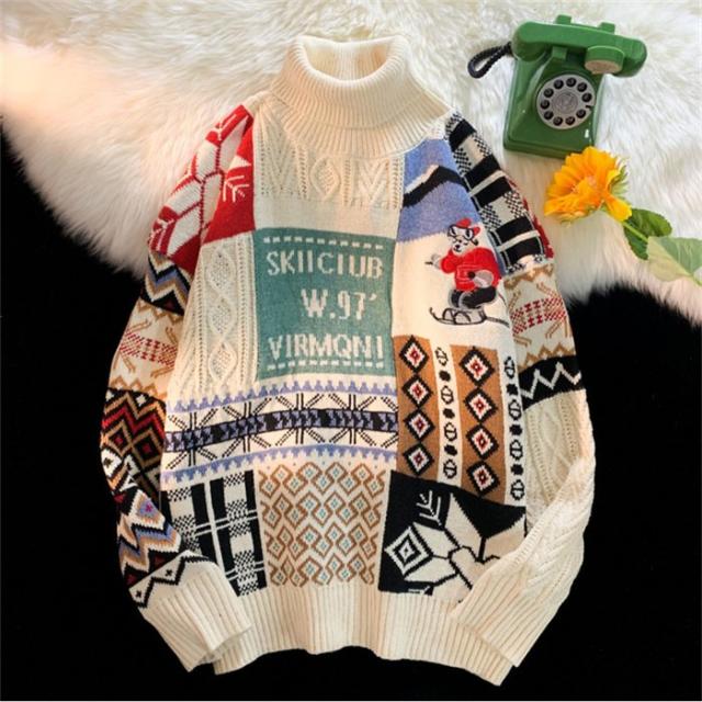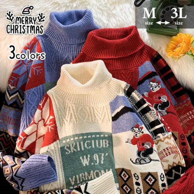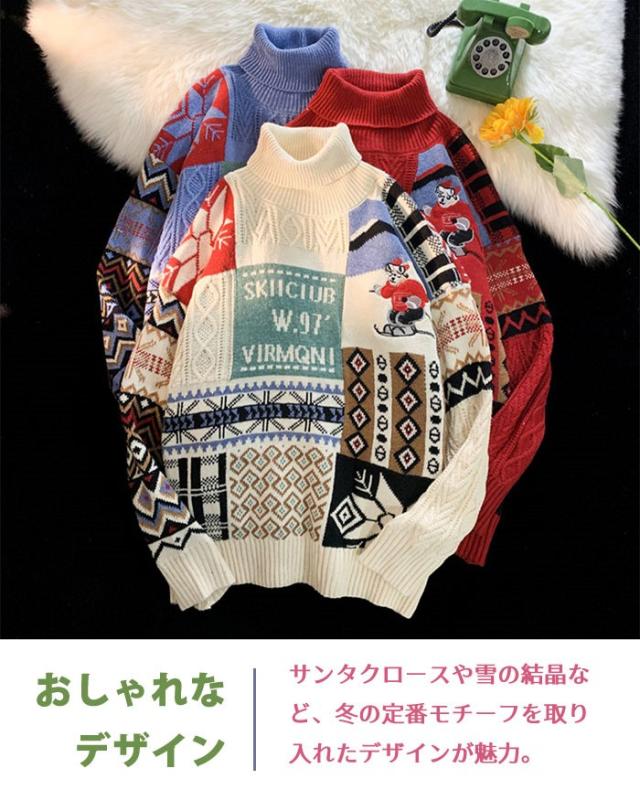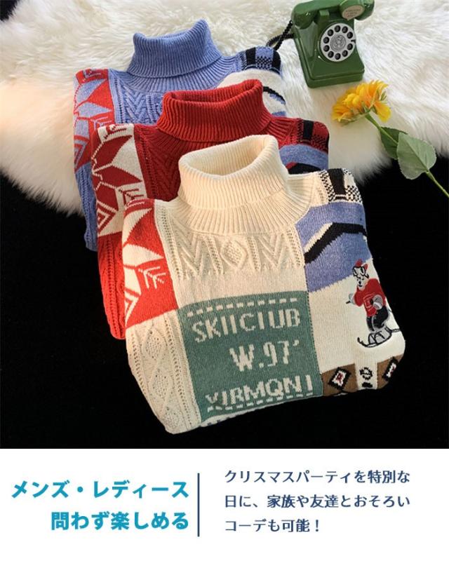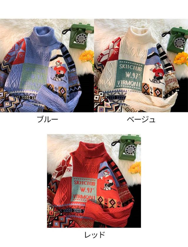 アグリーセーター 厚手 レディース クリスマス ハイネック セーター ニット ダサセーター メンズ ゆったり M〜3L ビッグシルエット パッチワーク 柄 長袖 オーバーサイズ カジュアル 防寒 ざっくり おしゃれ 冬 ペアルック M~3L プレゼント 彼女 彼氏 お揃い