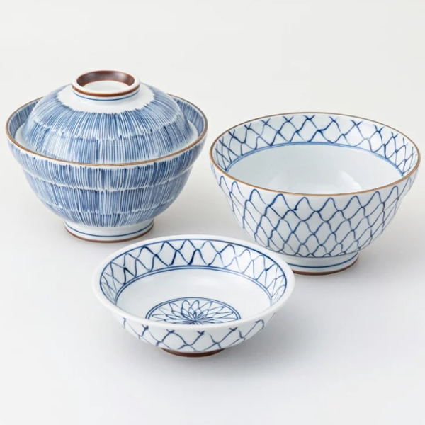 美濃焼 古染絵変り 蓋丼ペア 31202 2個、和皿、食洗器可、電子レンジ可、西海陶器、日本製、国産、化粧箱入、送料無料、おもてなし、定番、ご飯、どんぶり料理