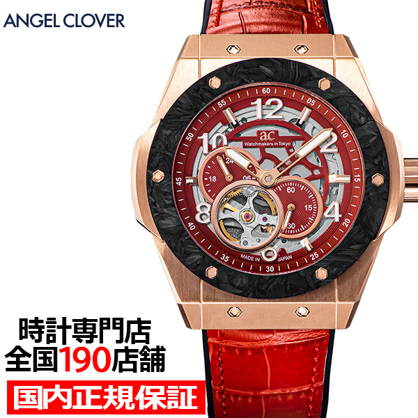 11月21日発売 エンジェルクローバー タイムクラフト 日本製モデル TCJ45PRE-RE メンズ 腕時計 機械式 自動巻き スケルトン 革ベルト レッド