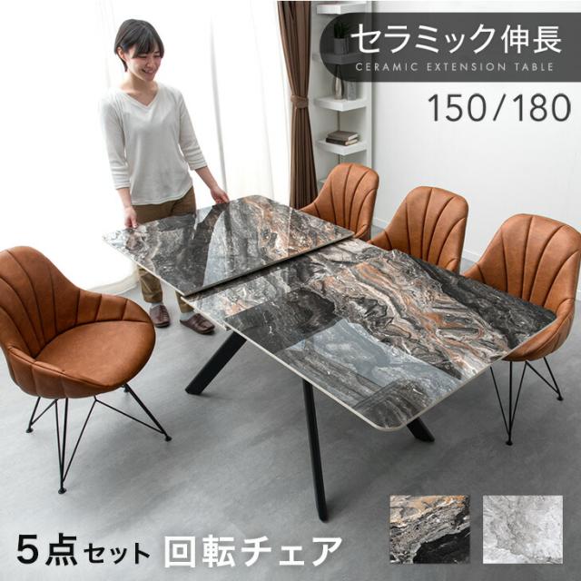 セラミック 伸長式 ダイニングセット 5点 4人掛け 回転椅子 伸縮 伸長 150 180 ダイニングテーブルセット 伸長式ダイニングテーブル 折りたたみ ダイニング テーブル ダイニングチェア 【超大型】【後払/時間指定NG】