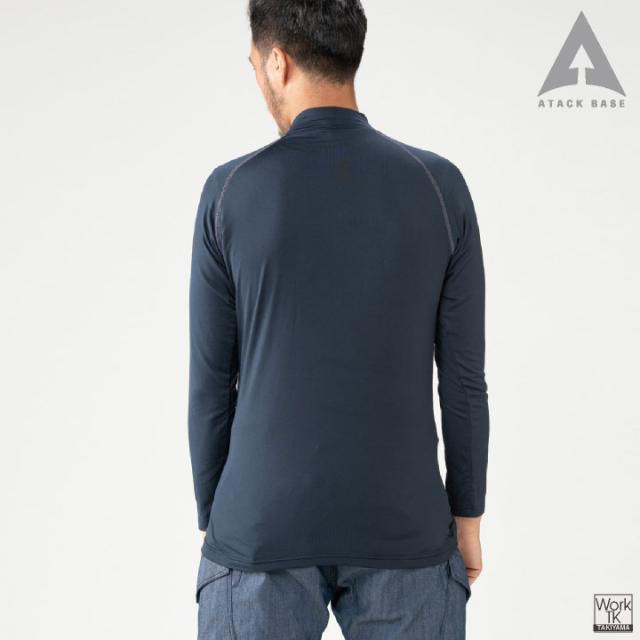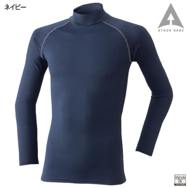 アタックベース 裏起毛 ハイネック インナーシャツ 長袖 ストレッチ 暖かい インナーウェア アンダーシャツ コンプレッション 秋冬 冬用 防寒 作業着 作業服 スポーツ バイク メンズ レディース 黒 紺 大きいサイズ ネコポス at-37615