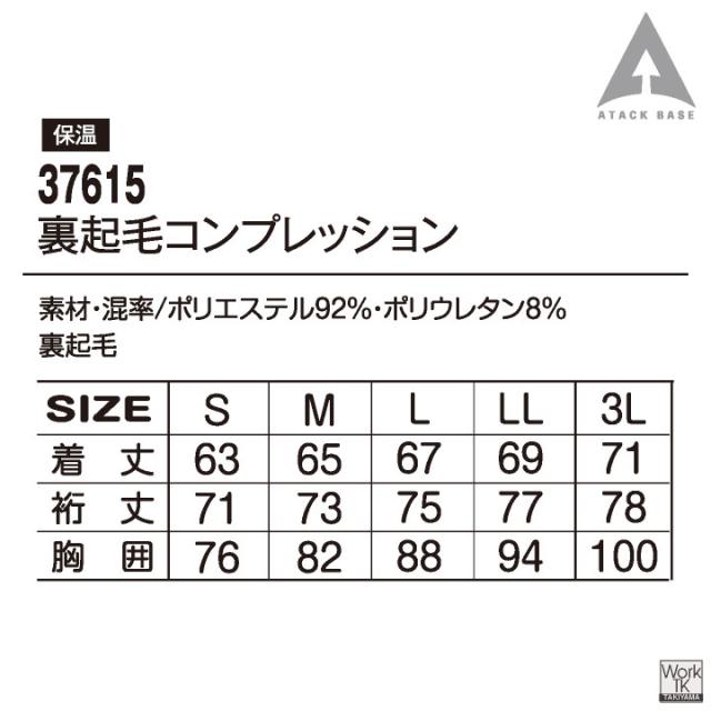 ATACK BASE 37615 裏起毛コンプレッション 冬を快適にするインナーシャツ! 保温性も抜群で、ワーク、カジュアル通していつでも履けるこだわりの防寒アイテム。