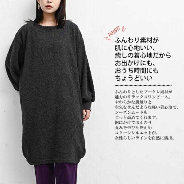 cam-aw-op0648 ふんわり素材に包まれるブークレニットコクーンワンピース。 大きいサイズ レディース 長袖ワンピース 長袖ニット ニットワンピース ニットチュニック コクーンワンピース チュニックワンピース あったかワンピース リラックスワンピース もこもこニット ふわふわニット ソフトタッチ ブークレ素材 ぬいぐるみ風 コクーンシルエット チュニック丈 膝上丈 ミドル丈 ミディアム丈 膝丈 クルーネック ボートネック ワイドネック 長袖 ロングスリーブ パフスリーブ 袖口リブ ポケット 秋服 冬服 秋物 冬物 秋ワンピース 冬ワンピース 秋ワンピ 冬ワンピ 秋ニット 冬ニット 秋冬ファッション 伸びる 伸縮 ストレッチ素材 透けない 裏地なし あったかワンピース 暖かい あったかい あたたかい ゆったり 大きめ 体型カバー 大きめシルエット 大人 カジュアル フェミニン ナチュラル リラックスウェア 大人可愛い きれいめ かわいい 着こなし おしゃれ 定番 秋コーデ 冬コーデ ファッション 大きめ 女性 婦人用 ミセス 30代 40代 50代 2025 冬新作 秋 冬 黒 灰色 ブラック ダークグレー M LL 3L 4L 5L 9号 13号 15号 17号 19号 cam-aw-op0648