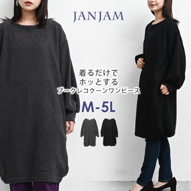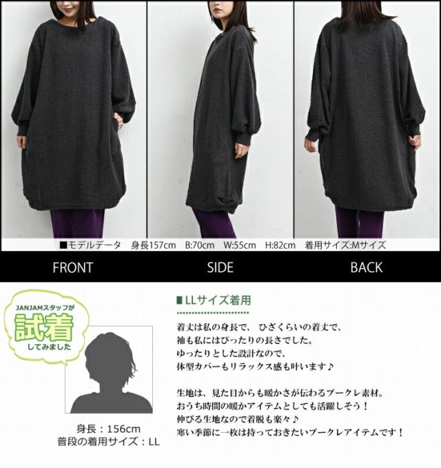 送料無料※沖縄/北海道対象外 大きいサイズ レディース ブークレニットワンピース 長袖 ミドル丈 もこもこニット ニットチュニック M/LL/3L/4L/5L ゆったりサイズ ぽっちゃり女子 プラスサイズ
