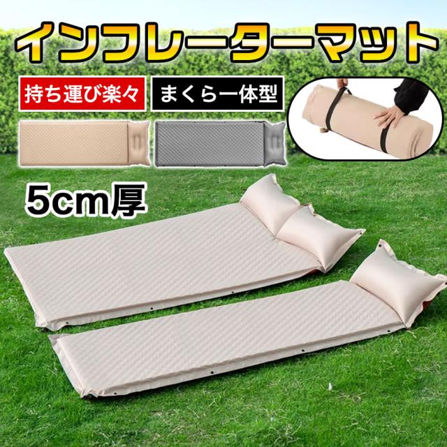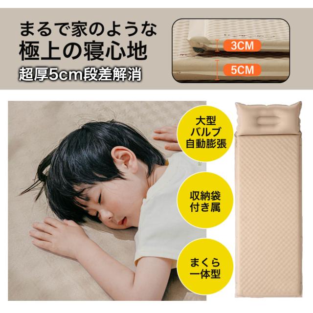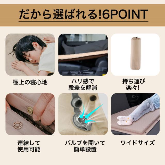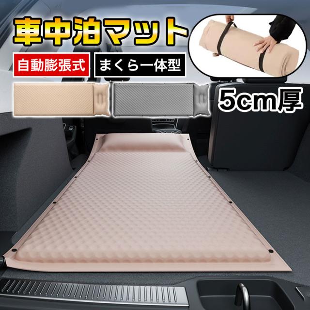 車中泊マット 5cm厚 キャンピングマット エアーマット インフレ一タ一マット 枕一体型 段差解消 連結 自動膨張 高密度ウレタ