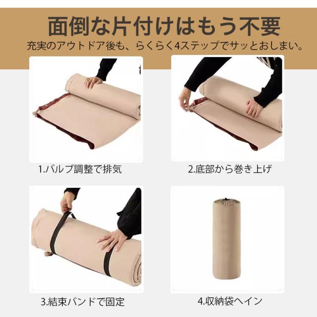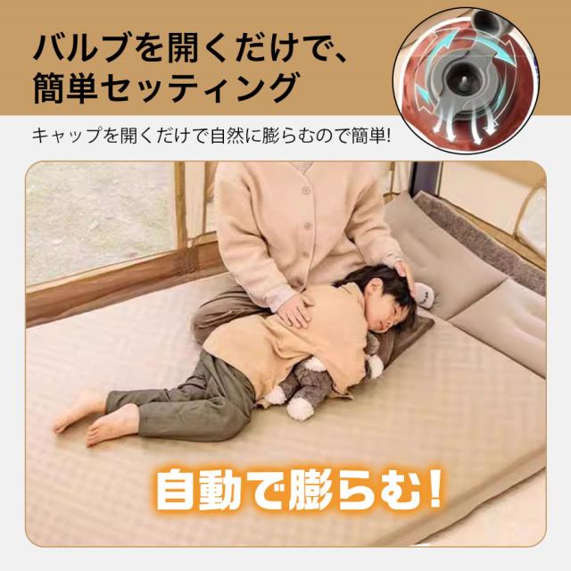 【吸気口を開けるだけですぐに自動で膨らむ】大型吸気口だから口を開いて置くだけで自動で膨らむ。短時間で自動で膨らむため、準備がらくらくです。また、逆流防止弁を使用したため1晩中快適な睡眠を実現。