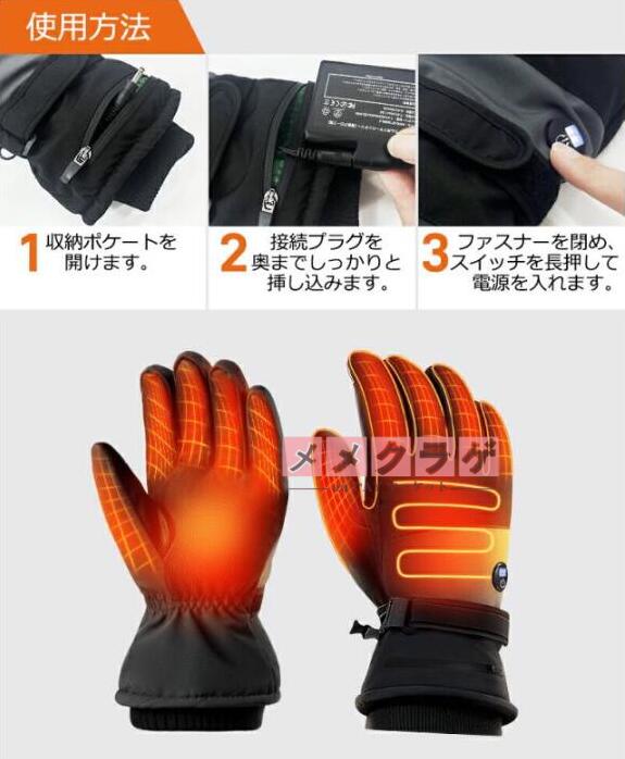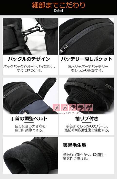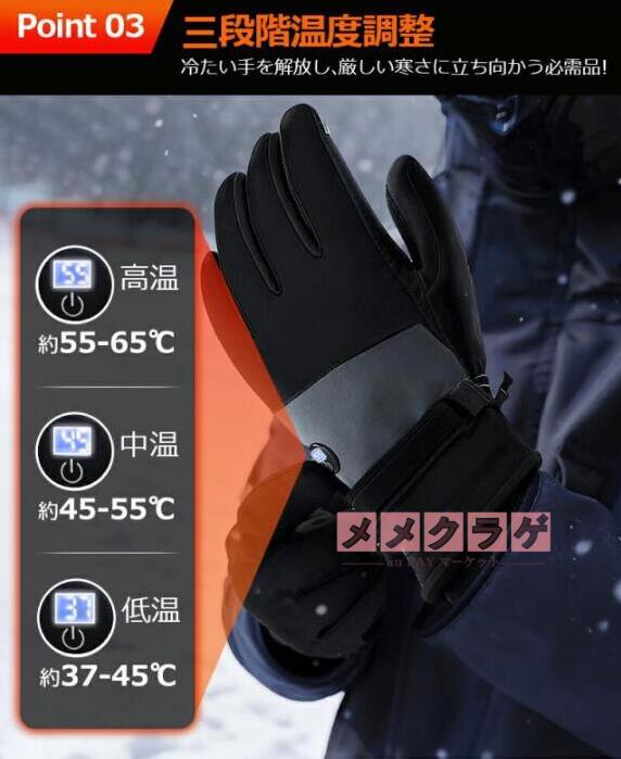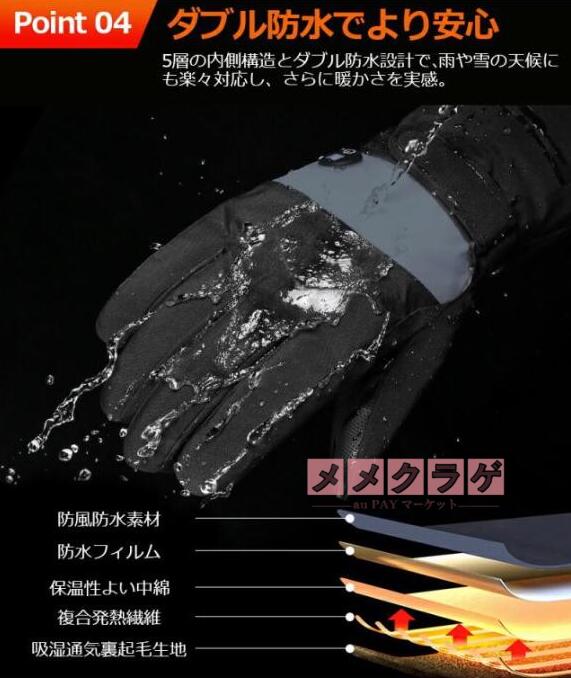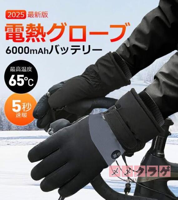 電熱グローブ バイク 6000mAhバッテリー 防水フィルム内蔵 保温素材 バッテリー ヒーターグローブ 冬用 高機能保温素材 裏起毛 3段階温度調整 撥水加工 防寒 男女兼用 ユニセックス メンズ レディース バイク 自転車 冬用