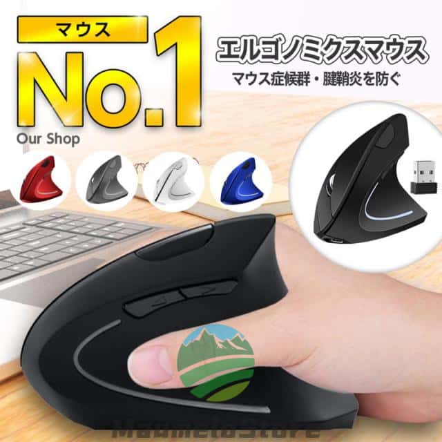 エルゴノミクスマウス 無線 ワイヤレスマウス エルゴ ブルーLED 6ボタン 静音 縦型 充電式 光学式 人間中心設計 人間工学デザイン エルゴマウス