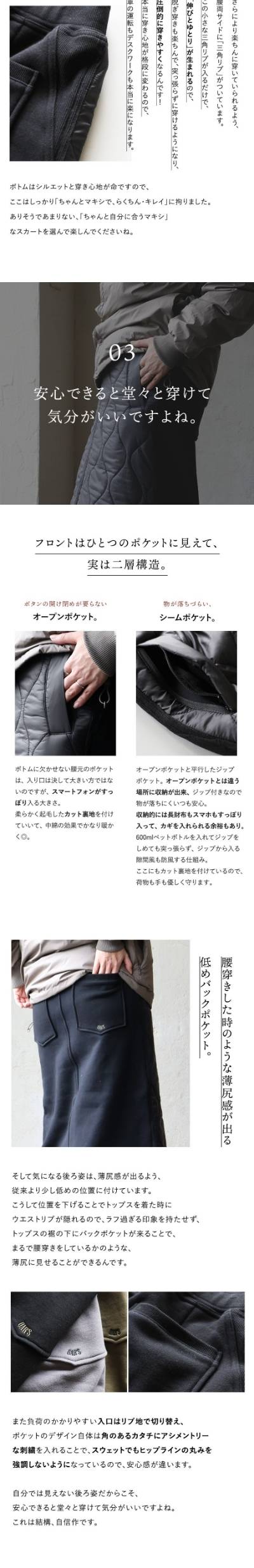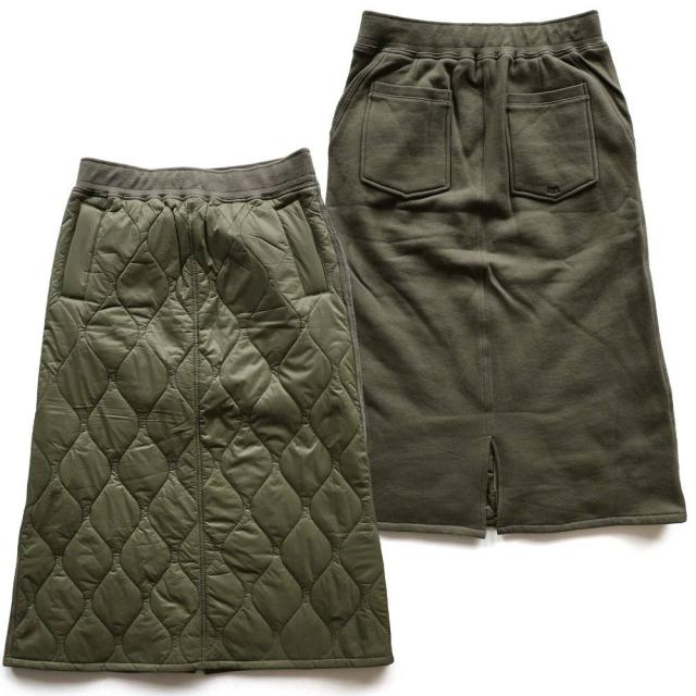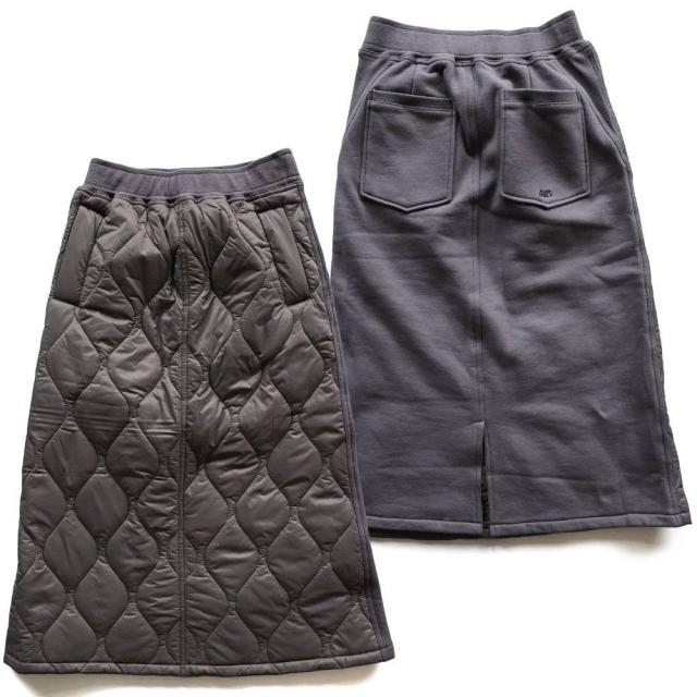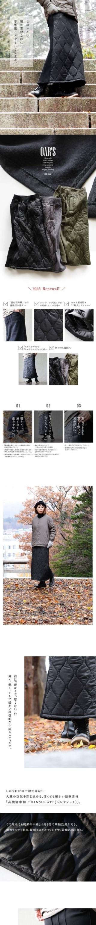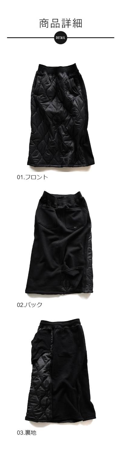スカート キルティング ダウンスカート レディース スウェット 切替 ロング丈 マキシ丈 丈が選べる 薄中綿 ウエストリブ 紐付き 軽量 防寒 暖かい ジップポケット 黒 着ぶくれない ダウンスカート スポーツ観戦 大人カジュアル 冬 パティ OAR’S オールズ
