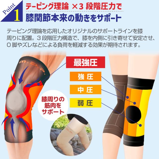 簡単装着!医学博士のテーピング理論に基づいたラインを膝周りに施した膝サポーター