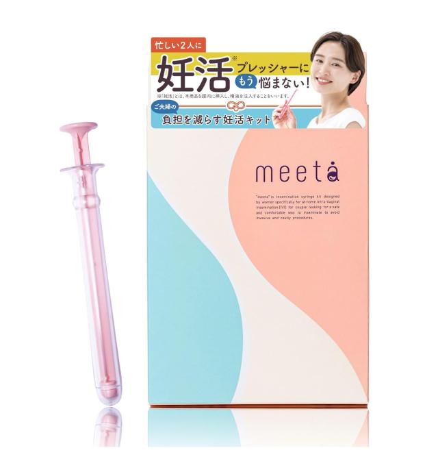 ・meetaは、忙しくて妊活タイミングが取りづらい、回数が足りない、気分が乗らない、苦痛など、何らかの理由で性交が難しいご夫婦のためのシリンジ法のキットです。