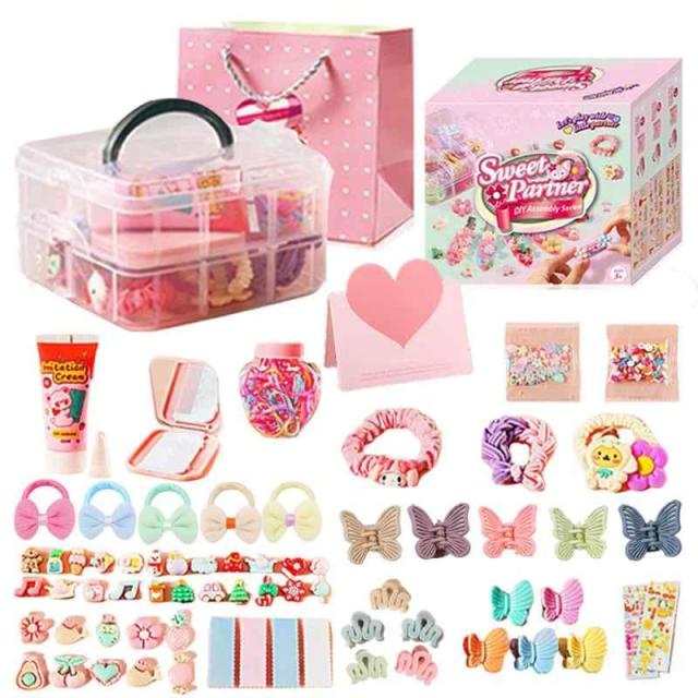CSDmeewin ヘアアクセサリーセット ケース付き かわいい 収納ボックス付き 女の子プレゼント ヘアクリップ ヘアゴム 入園式 入学式 子供の日 七五三 誕生日 クリスマス 女の子ギフト お姫様 小学生 プレゼント (TBK101-B)