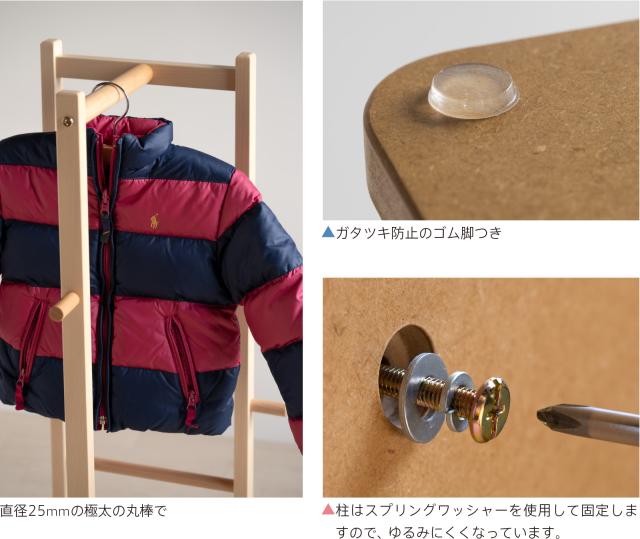 | 特 徴 | 置き場所に困るランドセルをかけておくことができる木製『ランドセルラック』。ランドセルをかけたまま蓋の開け閉めをすることができます。DX(デラックス)タイプはハンガー掛けもついているので、たくさんものをかけておくことができます。スリーピーのベビーベッド工場で作られた天然木の日本製品です。塗料?接着剤などはベビーベッドと同じ『ホルムアルデヒド放散等級区分国内最高基準F☆☆☆☆』を取得した材料を使用しています。 ・生産国:日本 ・組み立て式 |
