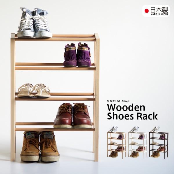 日本製 「 木製 シューズラック【4段】」 下駄箱 玄関収納 スリッパラック 靴置き 玄関 省スペース 靴箱 スニーカー 靴棚 石崎家具