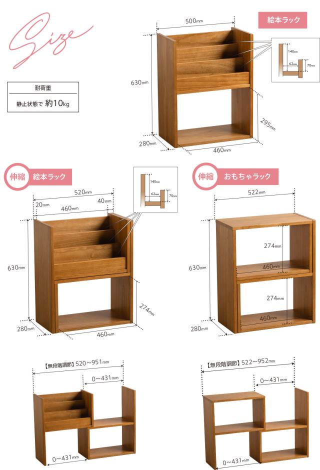【伸縮】絵本ラック:W520×D280×H630mm(閉じた状態)