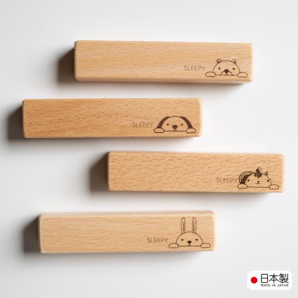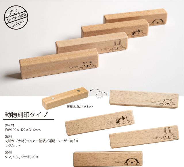 日本製 木製「SLEEPY動物レーザー刻印 マグネットバー4本」 冷蔵庫 マグネット バー インテリア リビング キッチン 玄関 天然木 メモホルダー 磁石 石崎家具