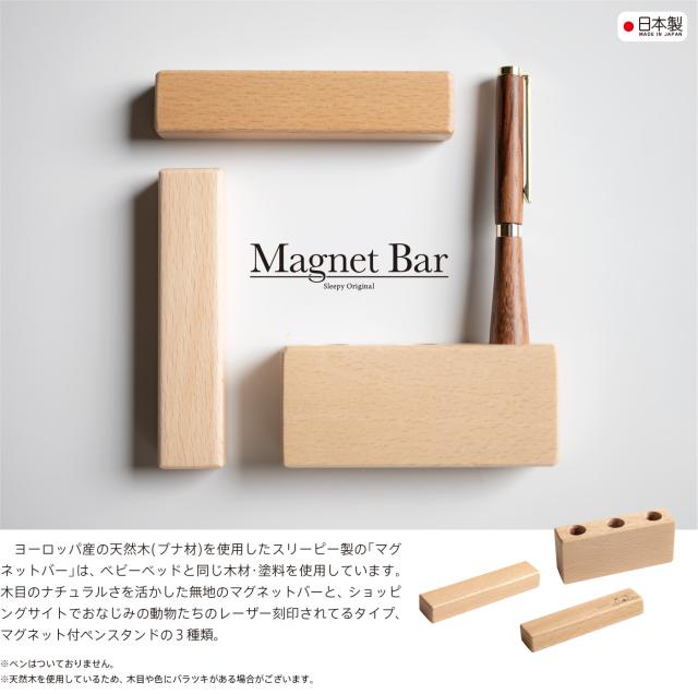 ヨーロッパ産の天然木(ブナ材)を使用したスリーピー製の「マグネットバー」は、ベビーベッドと同じ木材・塗料を使用しています。木目のナチュラルさを活かした無地のマグネットバー。ショッピングサイトでおなじみの動物たちのレーザー刻印されています。