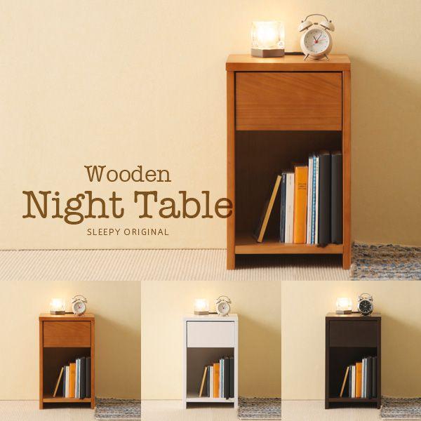 さりげなくベッドサイドを演出する天然木のスリーピーオリジナルナイトテーブル。化粧合板などは使用していませんので、天然木の味わいをお楽しみいただけます。タイプは2種類。シンプルな引出しなしタイプと、なにかと便利なコンセントと引出し付タイプの2種類で、カラーはナチュラル(NA)、ホワイト(WH)、ブラウン(BR)の3色の中からお選びいただけます。 組立作業は不要で、完成品の状態でお届けいたします。