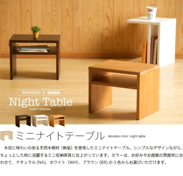 木目に味わいのある天然木桐材(集成材)を使用したミニナイトテーブル。シンプルなデザインながら、ちょっとした時に活躍するミニ収納家具に仕上がっています。カラーは、お好みやお部屋の雰囲気に合わせて、ナチュラル(NA)、ホワイト(WH)、ブラウン(BR)の3色からお選びいただけます。 組立作業は不要で、完成品の状態でお届けいたします。