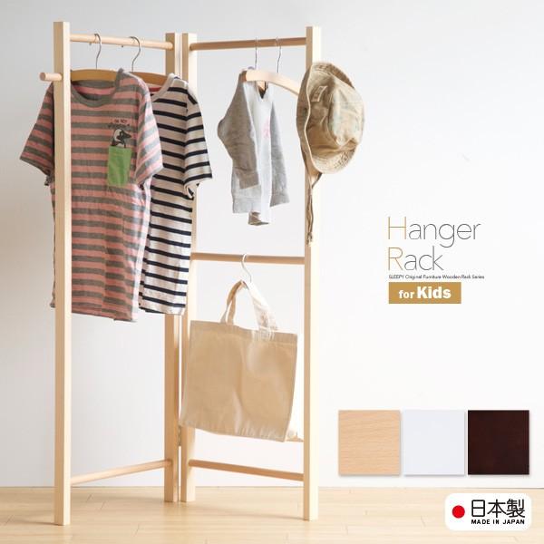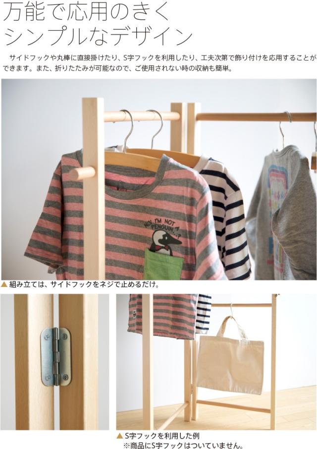 日本製「【キッズ用】木製 折りたたみ ハンガーラック」 木製ラック 2段 子供用 折りたたみ式 省スペース 石崎家具