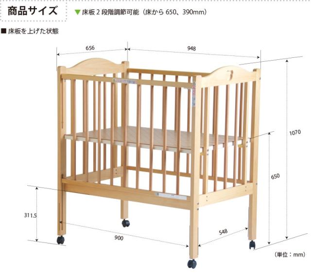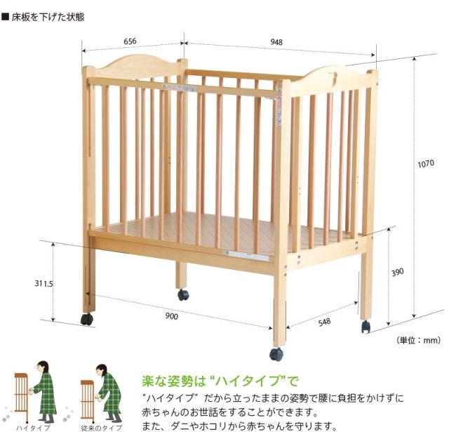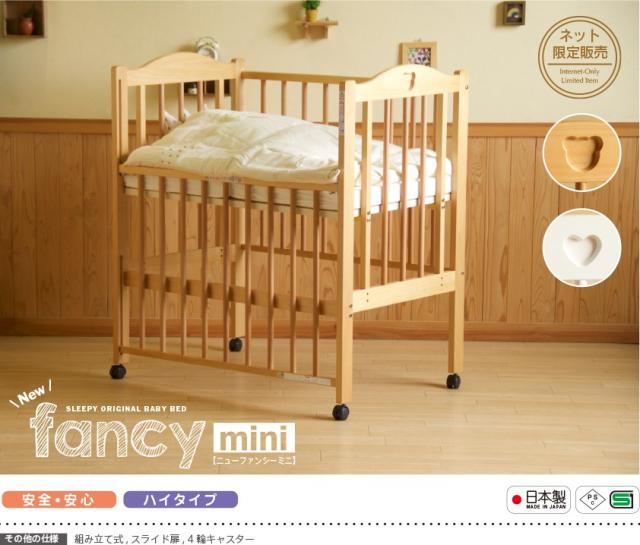 日本製 ベビーベッド「NEWファンシーミニ」 ミニサイズ ハイタイプ ベビーベット 国産 コンパクト 高さ調節 石崎家具