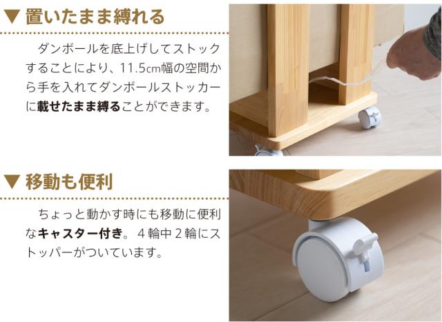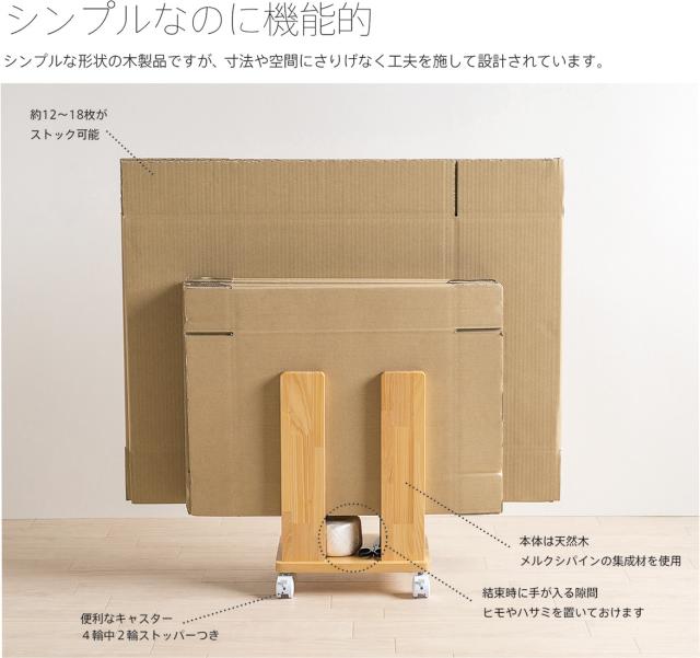 日本製 「木製 ダンボールストッカー」 コンパクト キャスター付き 段ボールストッカー 段ボール 収納 収納ラック 段ボール 段ボールスタンド 石崎家具