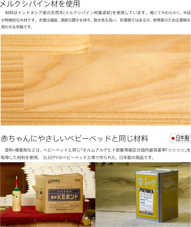 ネット通販の利用などで意外にたまっていくダンボールを収集日までにストックしておくための木製『ダンボールストッカー』。スリーピーのベビーベッド工場で作られた天然木の日本製品です。木材はメルクシパイン材を使用しており、塗料?接着剤などはベビーベッドと同じ『ホルムアルデヒド放散等級区分国内最高基準F☆☆☆☆』を取得した材料を使用しています。 キャスターを取り付けるだけの「ほぼ完成品」の状態でお届けいたします。