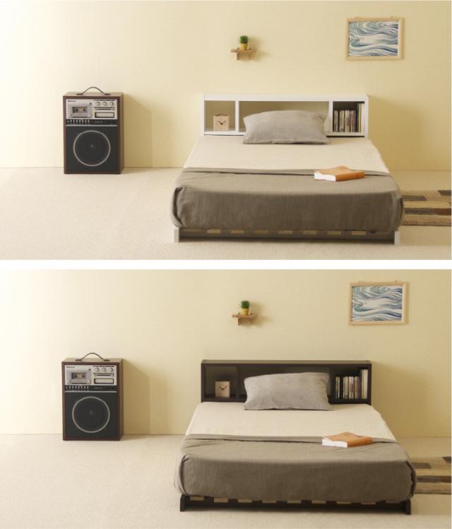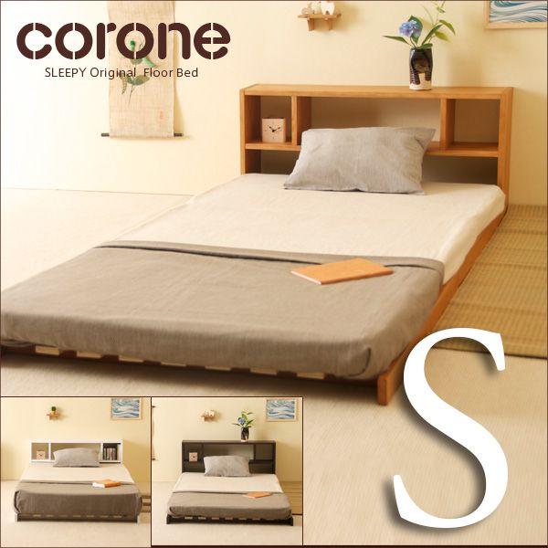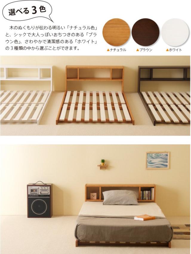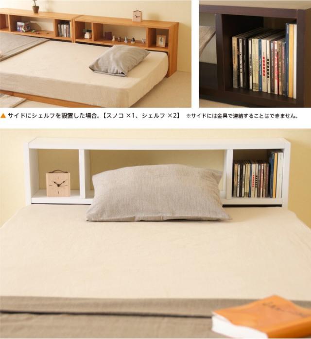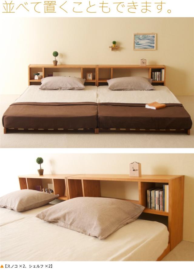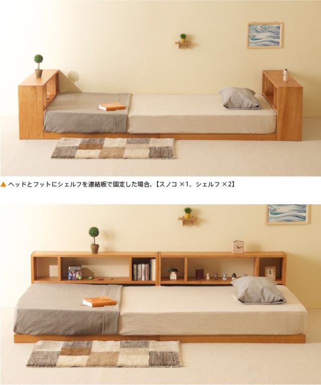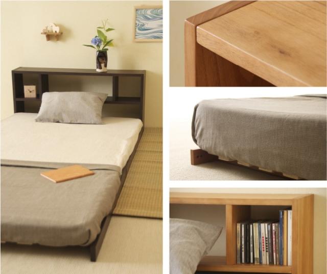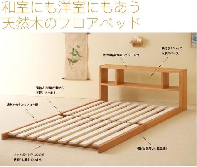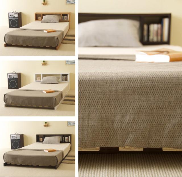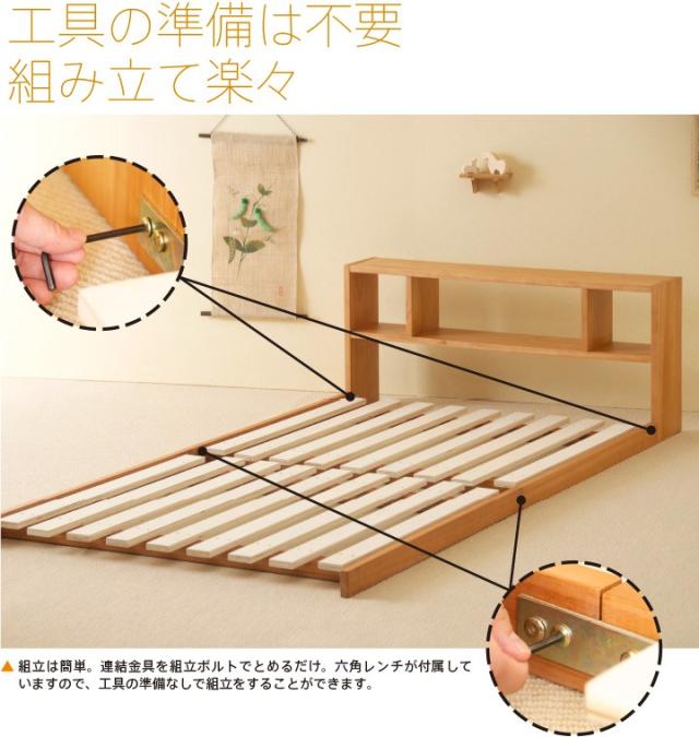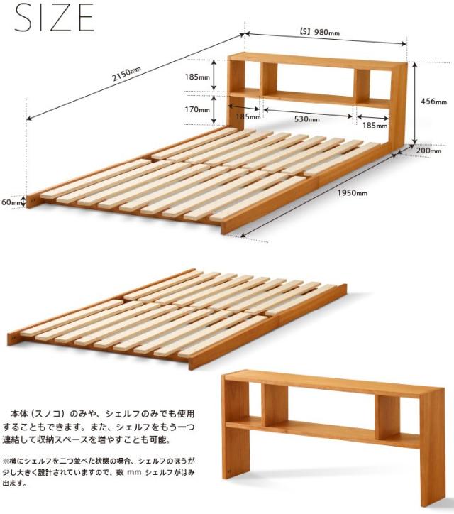 木製 「フロアベッド コロネ(S)【すのこ+シェルフ】」 シングル ローベッド フレーム すのこ 棚付き 収納 石崎家具