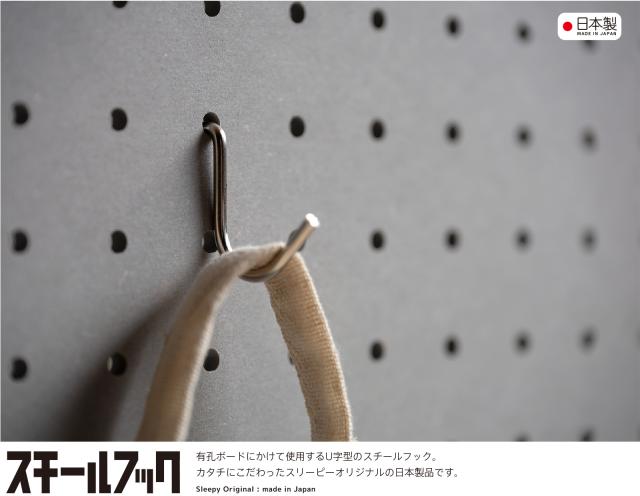 有孔ボードにかけて使用するU字型のスチールフック。カタチにこだわったスリーピーオリジナルの日本製品です。