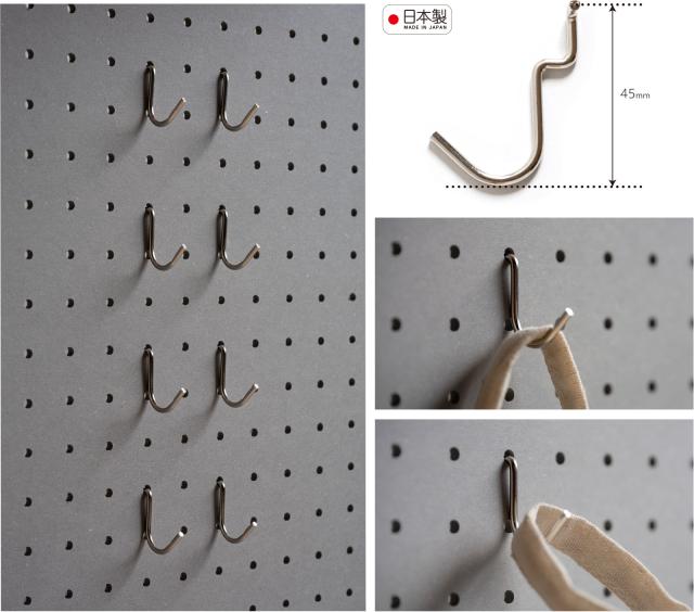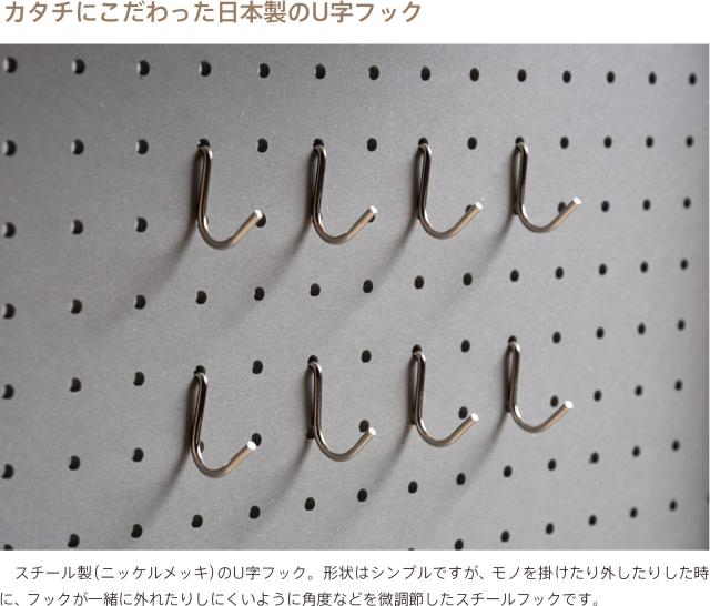 日本製 「U字型スチールフック 16本セット」 パンチングパネル パンチングボード 有孔ボード 省スペース 石崎家具