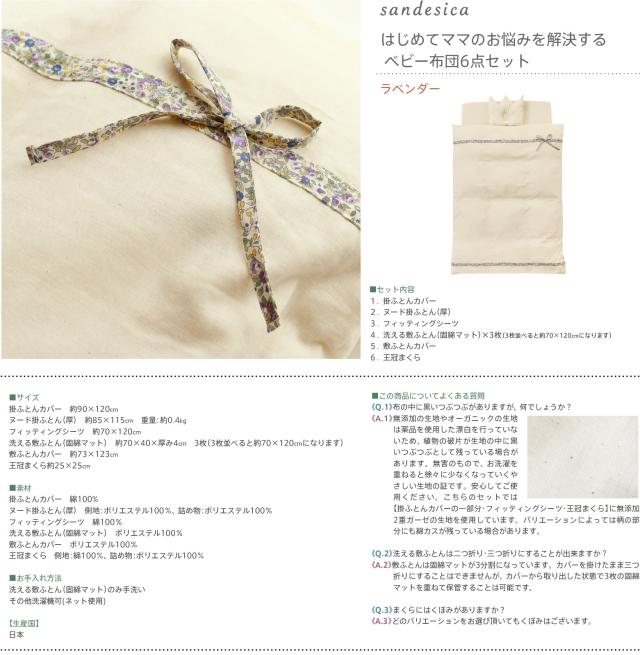 sandesica(サンデシカ) はじめてママのお悩みを解決する ベビー布団6点セット ラベンダー・レギュラーサイズ ベビー布団 日本製