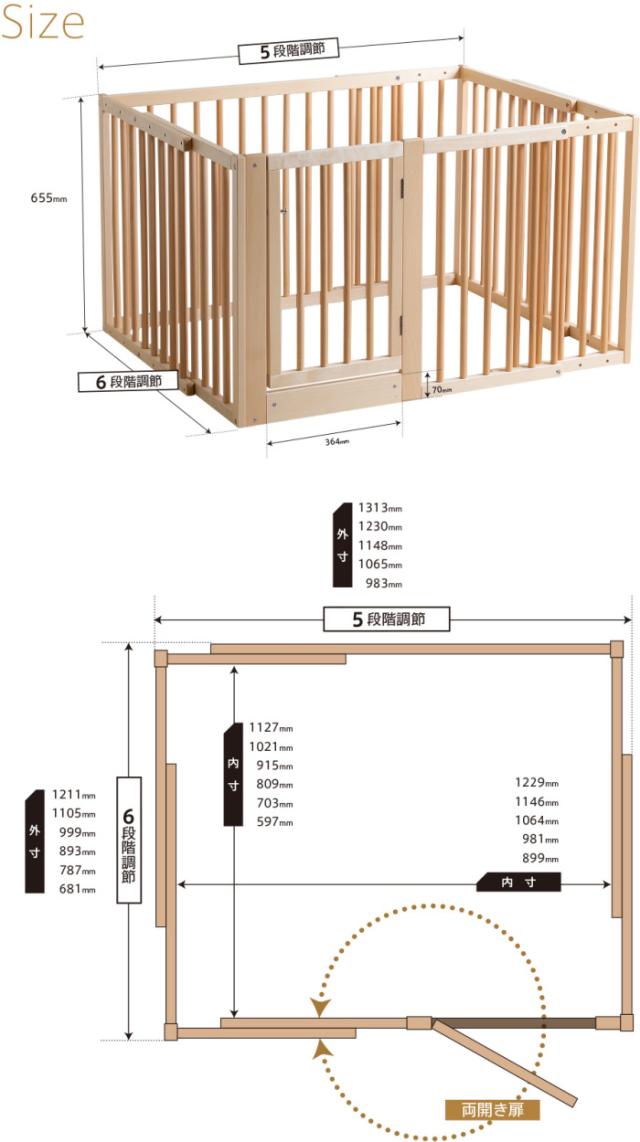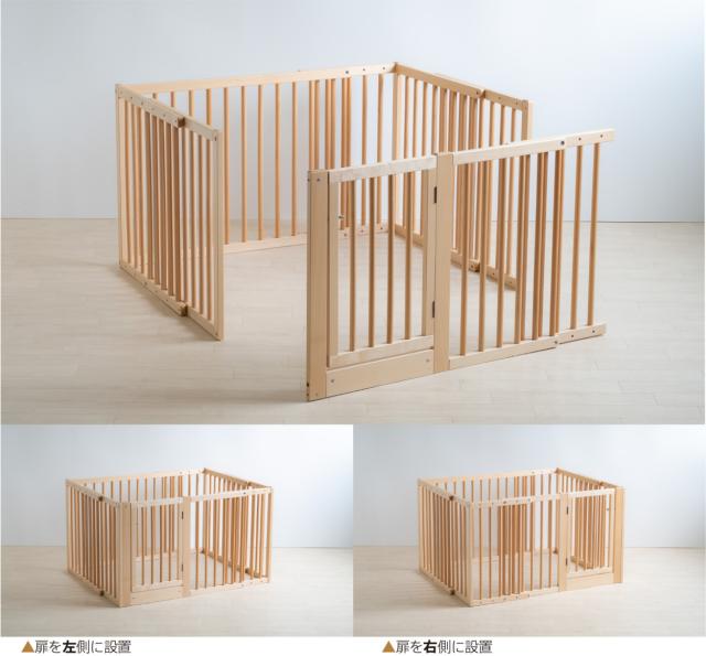 日本製 「両開扉 伸縮 木製ペットサークル」 大型犬 中型犬 小型犬 サークル 折りたたみ ペットケージ ペットゲージ 石崎家具