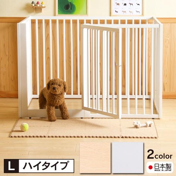 日本製「木製ワンタッチペットサークル Lサイズ ハイタイプ」 ペットサークル 折りたたみ 犬用 ケージ 天然木