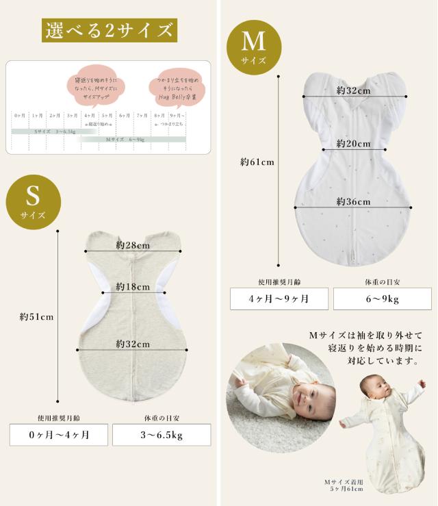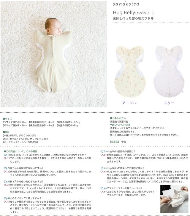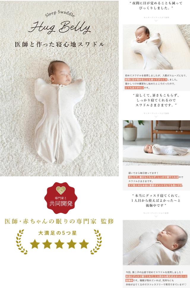 sandesica(サンデシカ)「Hug Belly(ハグベリー)医師と作った寝心地スワドル【Sサイズ】」 ベビースワドル おくるみ 洗濯機 乾燥機 新生児