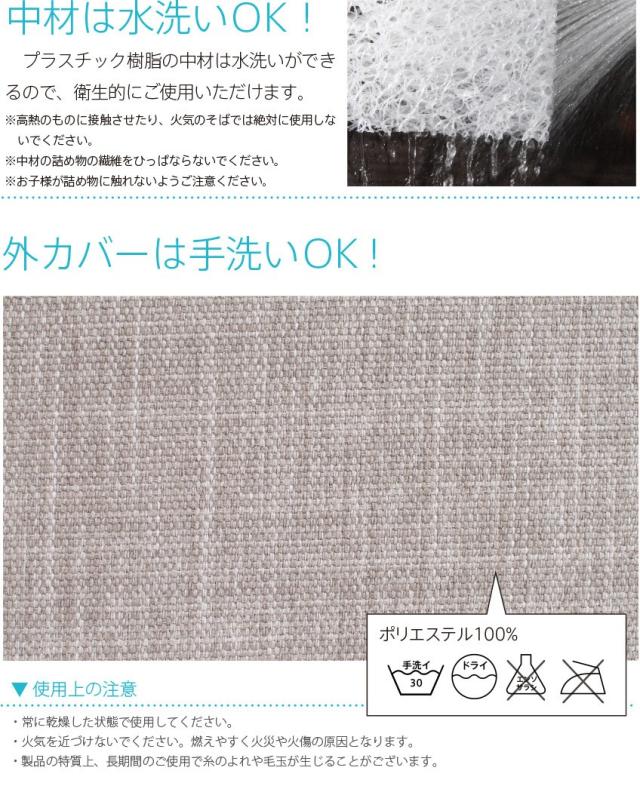 | 主 材 | 【カバー】 ポリエステル100% 【中材】 プラスチック樹脂 |