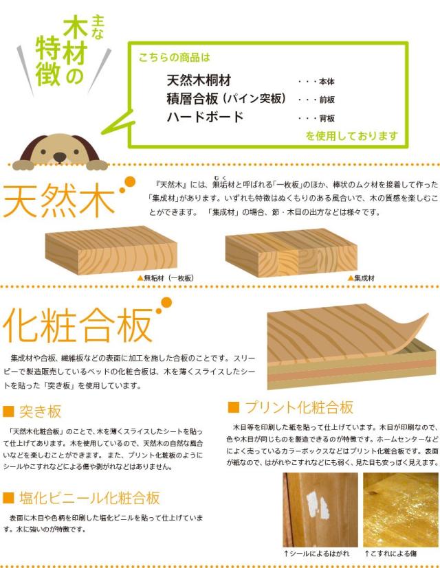 | 主 材 | 天然木桐材……本体 積層合板(パイン突板)……前板 ハードボード……背板 |
