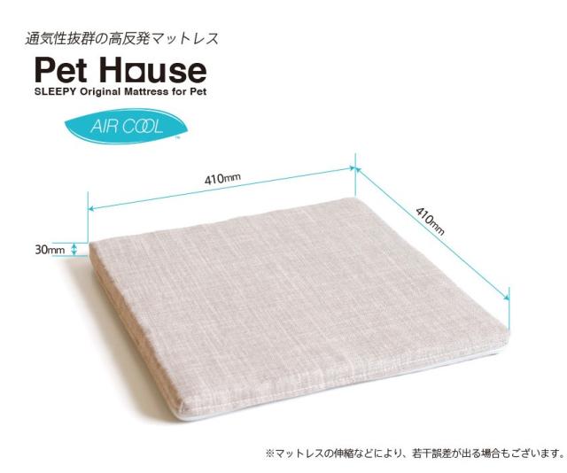 ご要望の多かった「木製ペットハウス用マットレス」の登場です。手洗いOKの外カバーと、通気性抜群の中芯“エアクール”を使った快適マットレスです。中芯のチューブ状の繊維が空気の層をつくり、快適空間を生み出します。洗うことができるので、いつでも清潔。また、マットレス単品でもご利用いただけます。