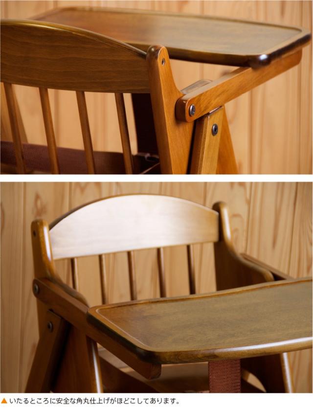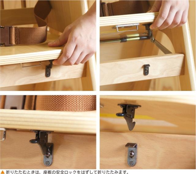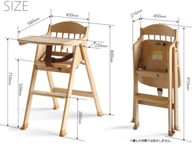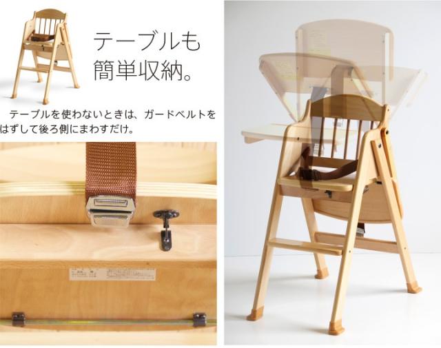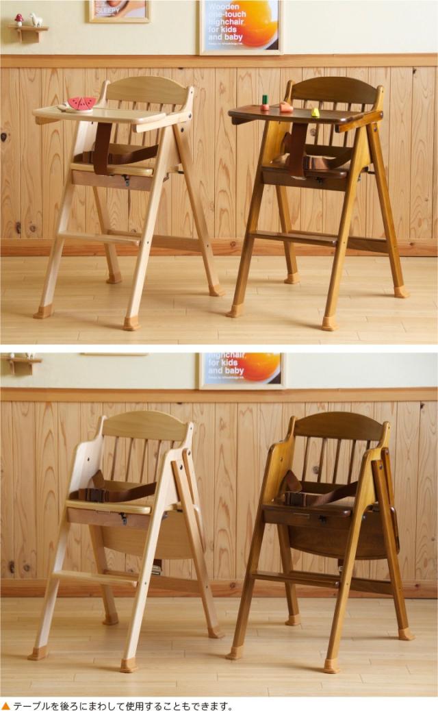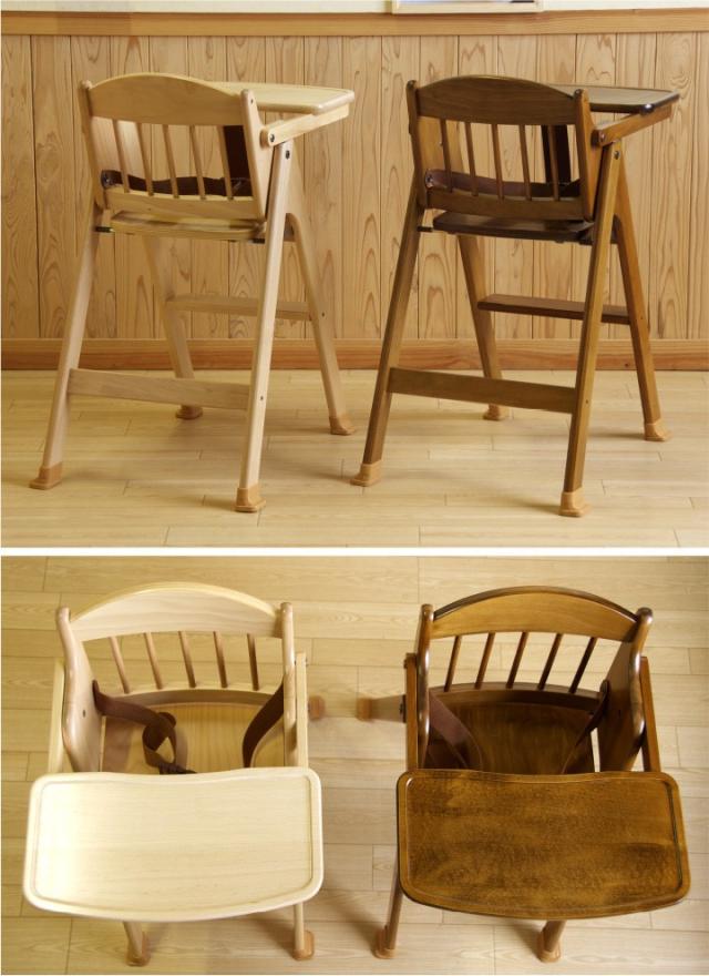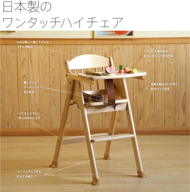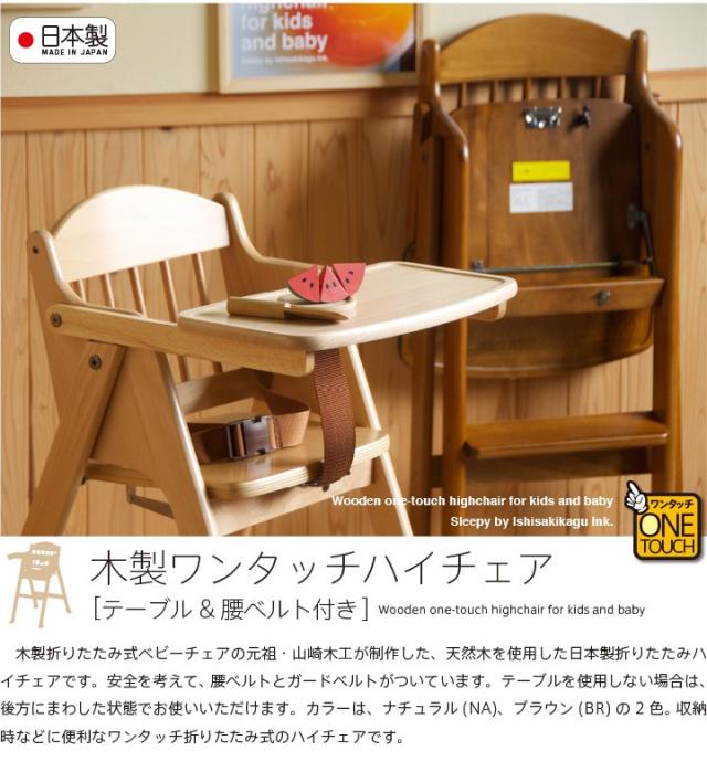 「木製ワンタッチハイチェア【テーブル&腰ベルト付き】」 折りたたみ ベビーチェア 石崎家具 山崎木工 日本製