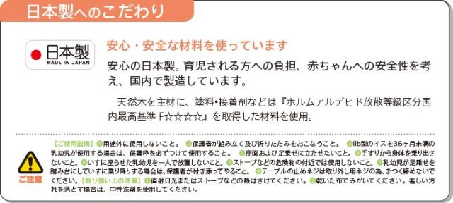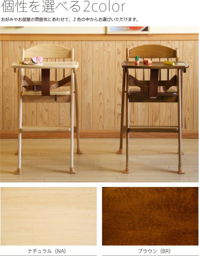 木製折りたたみ式ベビーチェアの元祖・山崎木工が制作した、天然木を使用した日本製折りたたみハイチェアです。安全を考えて、腰ベルトとガードベルトがついています。テーブルを使用しない場合は、後方にまわした状態でお使いいただけます。カラーは、ナチュラル(NA)、ブラウン(BR)の2色。 収納時などに便利なワンタッチ折りたたみ式のハイチェアです。