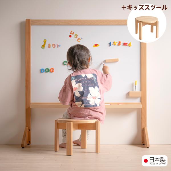 木製「きっずほわいとぼーど【Lサイズ】+キッズスツール」 ホワイトボード お絵描き 誕生日 プレゼント クリスマス 知育玩具 石崎家具