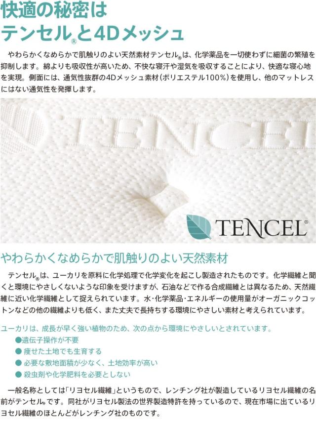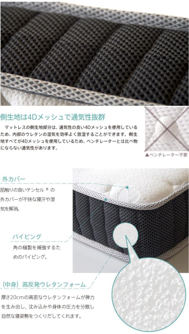 「高反発マットレス テンセル×4Dメッシュ (K20-S)シングル」 高反発 通気性 マット 高反発敷き布団 シングルマットレス 体圧分散 石崎家具