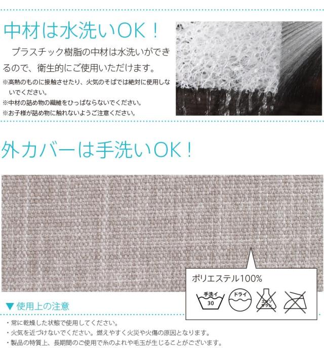 | 主 材 | 【カバー】 ポリエステル100% 【中材】 プラスチック樹脂 |