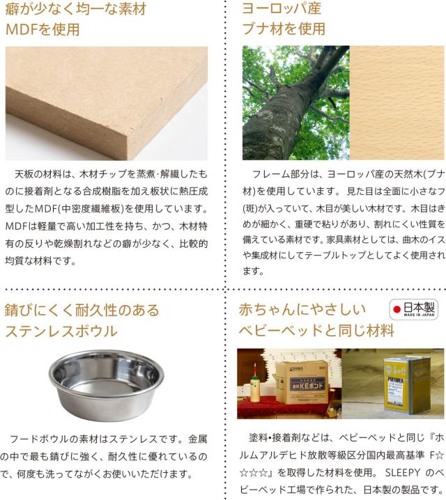 | 主 材 | 【天板】 MDF 【フレーム】 ブナ材 【フードボウル】 ステンレス |