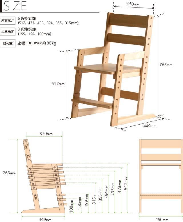 「木製チェア moi(モイ)」 学習 いす 椅子 イス 高さ調節 天然木 石崎家具
