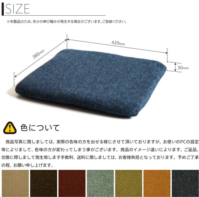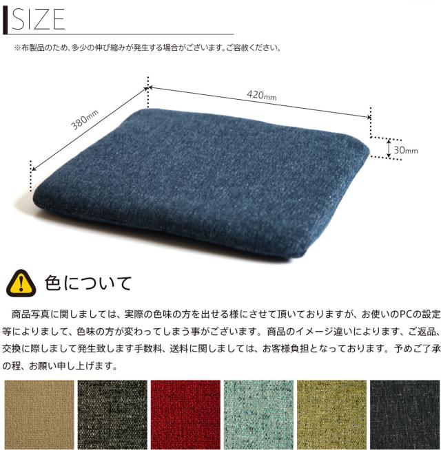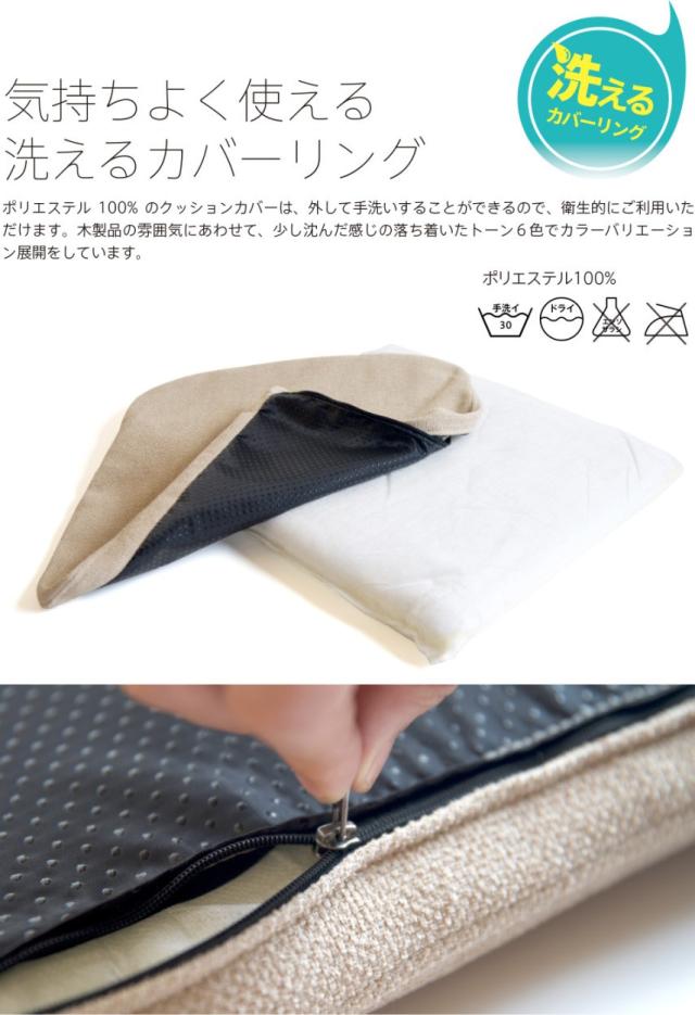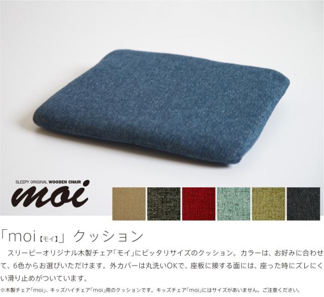 スリーピーオリジナル木製チェア「モイ」にピッタリサイズのクッション。カラーは、お好みに合わせて、6色からお選びいただけます。外カバーは丸洗いOKで、座板に接する面には、座った時にズレにくい滑り止めがついています。