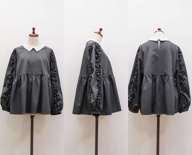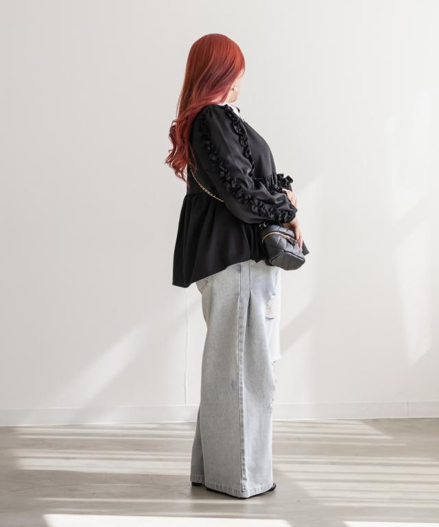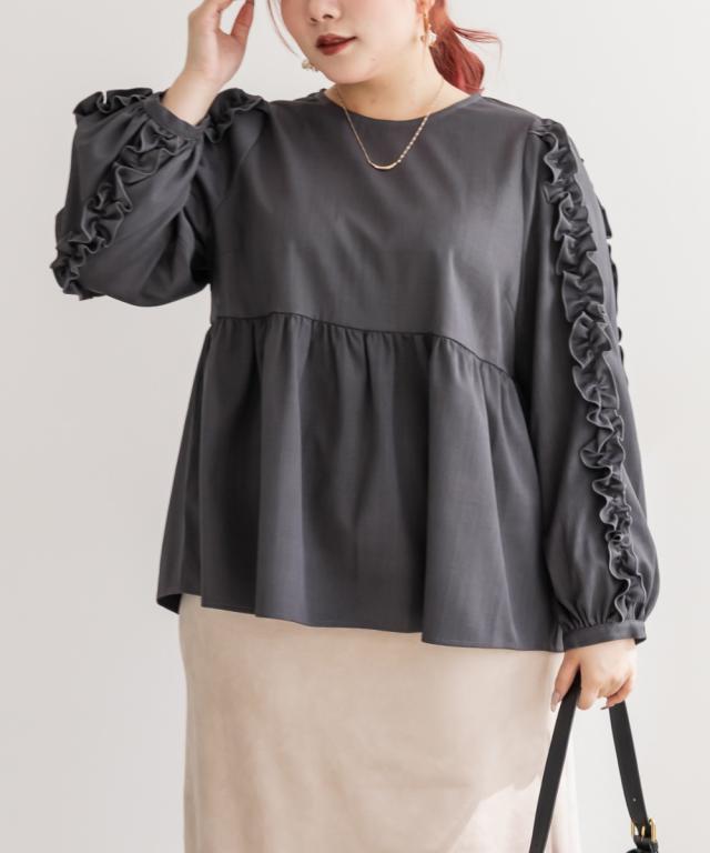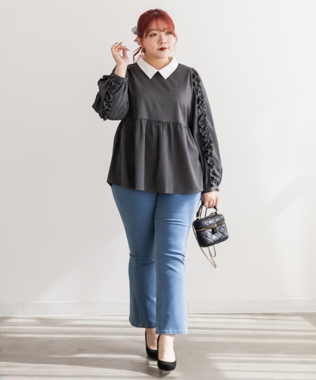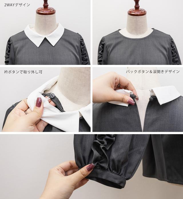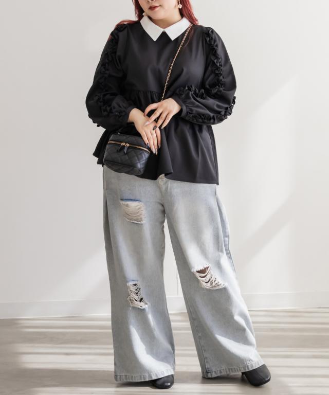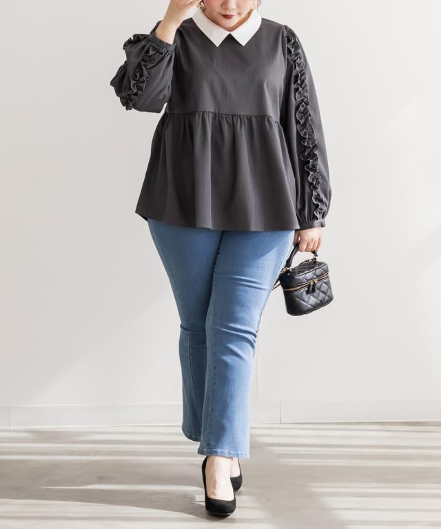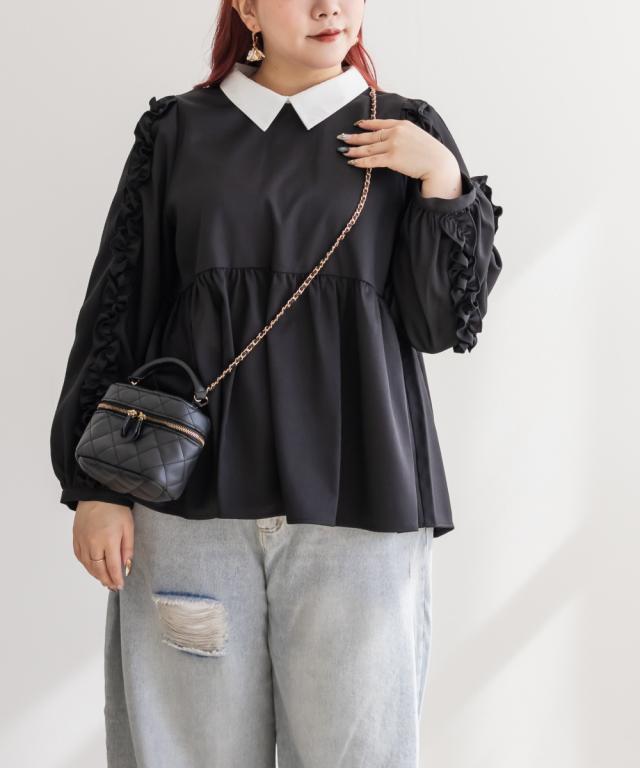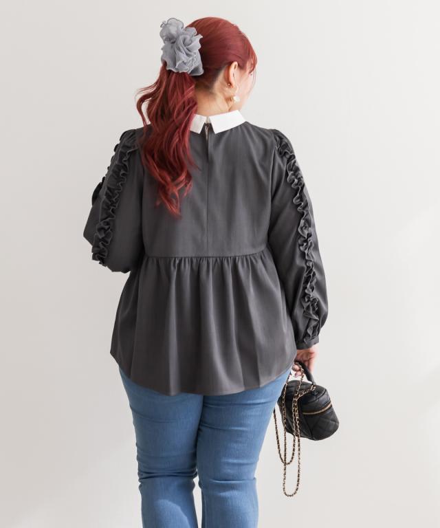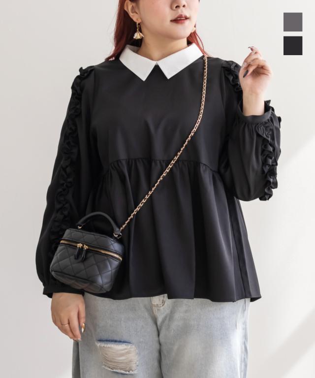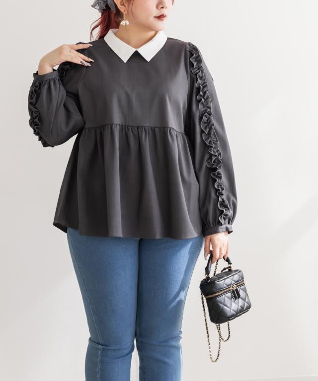 大きいサイズ/レディース/3L/4L/袖フリル2WAY衿レイヤード風ブラウス
