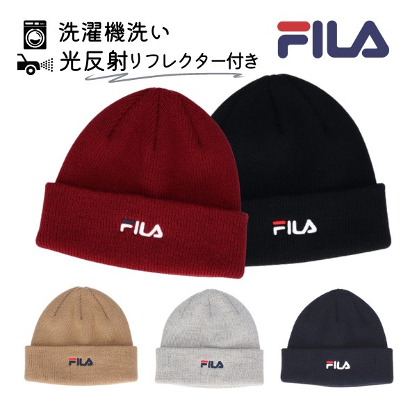 FILA 洗濯機で洗える ロゴ ニット帽 反射材 リフレクター付き ニットワッチ ビーニー スキー スノボ ウィンタースポーツ 防寒 防寒帽子 暖か 二重仕立て メンズ 男性 レディース 女性 男女兼用 ユニセックス 秋 冬 フィラ 帽子 118-113201